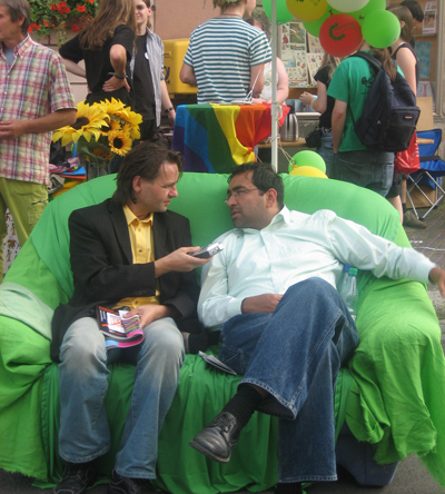 Blickgang der Grünen war, wie bereits im vergangenen Jahr, das bewährte "grünen Sofa". Dort konnte mit allen grünen MandatsträgerInnen ungezwungen Gespräche geführt und Meinungen ausgetauscht werden.
