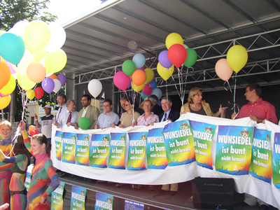 Neben den Mitgliedern des grünen Kreisverbandes Hof waren Bundesvorstandsmitglied Omid Nouripour und die MdB`s Elisabeth Scharfenberg und Monika Lazar an diesem Tag in Wunsiedel auf der Meile der Demokratie anzutreffen. Monika Lazar ist in der grünen Bundestagsfraktion Sprecherin für Strategien gegen Rechtsextremismus. Die Fraktion der Bündnisgrünen im Bayerischen Landtag wurde durch die oberfränkische Landtagsabgeordnete Ulrike Gote vertreten. Zahlreiche bündnisgrüne Kreisvorsitzende aus Oberfranken und der Oberpfalz, aus Sachsen und Thüringen waren angereist. Die neu gegründete oberfränkische Grüne Jugend, unter anderem mit Swantje Fischer und Stephan Clemens, bekannten an ihrem Infostand Farbe.
